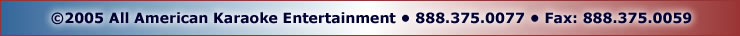 ©2008 All American Karaoke. For sales and rental information, please email us at sales@allamericankaraoke.com. Please send all other inquiries to info@allamericankaraoke.com